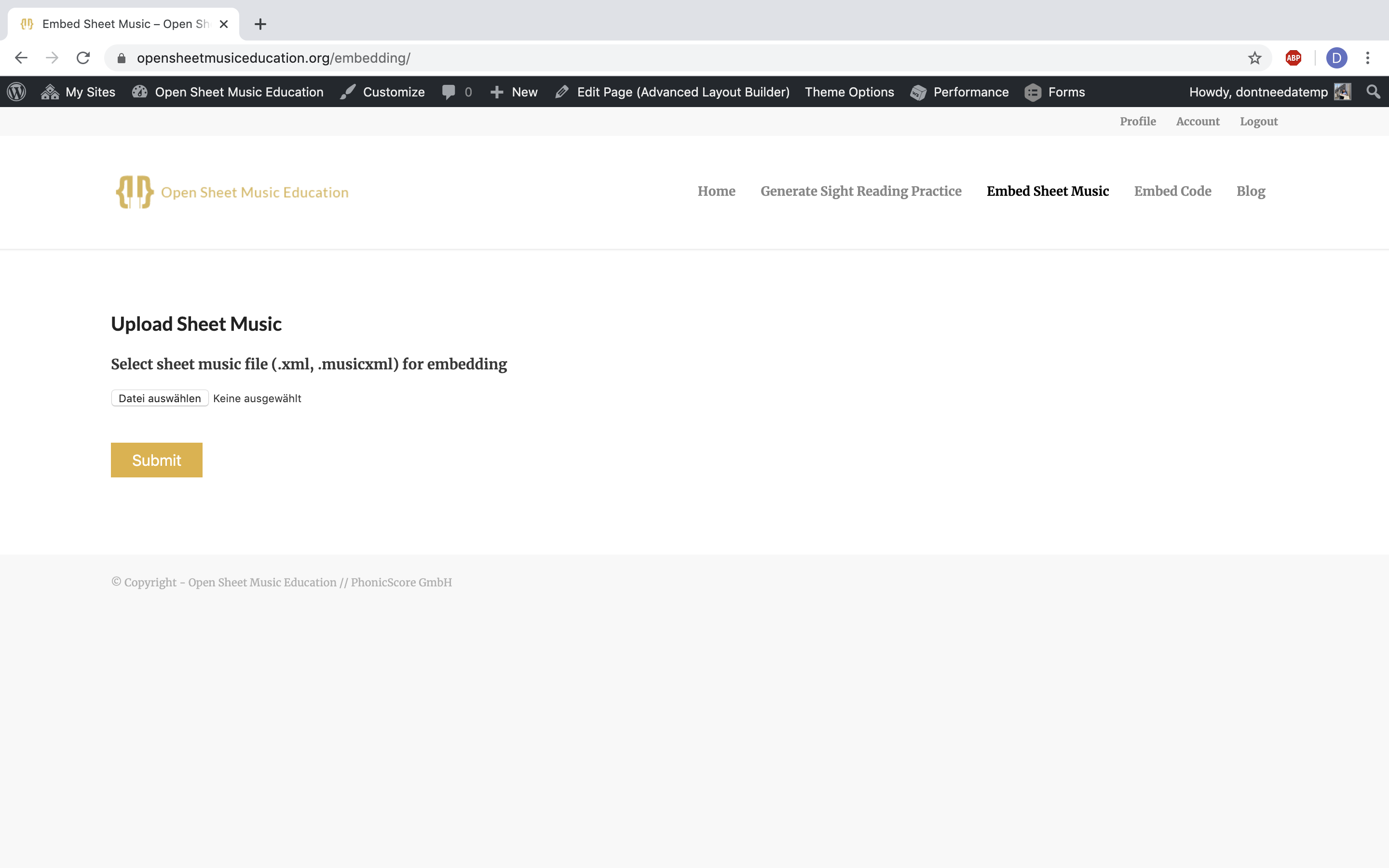 - Upload your MusicXML file and click submit