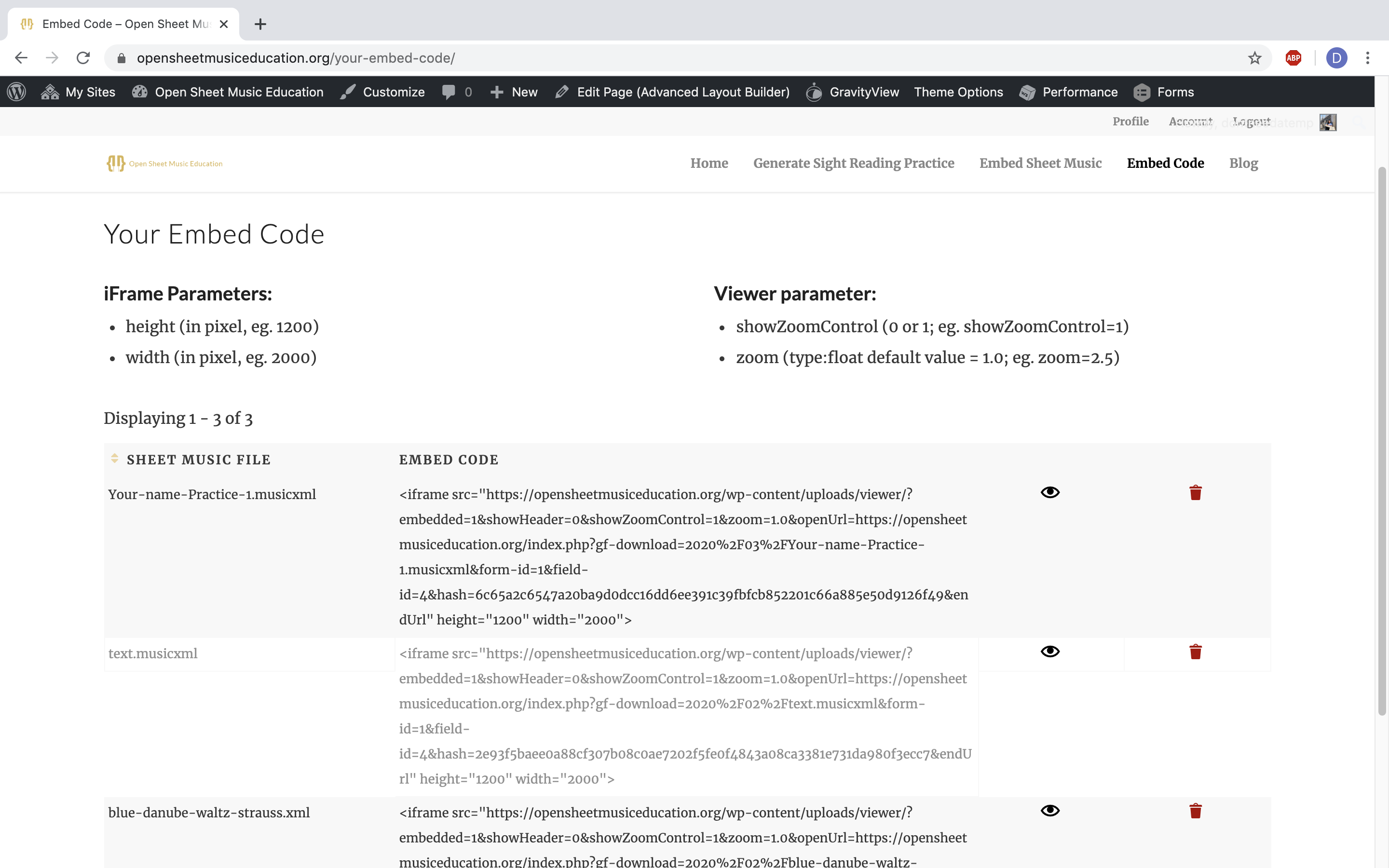 - If you want to delete an embed code, click on the bin icon on the right